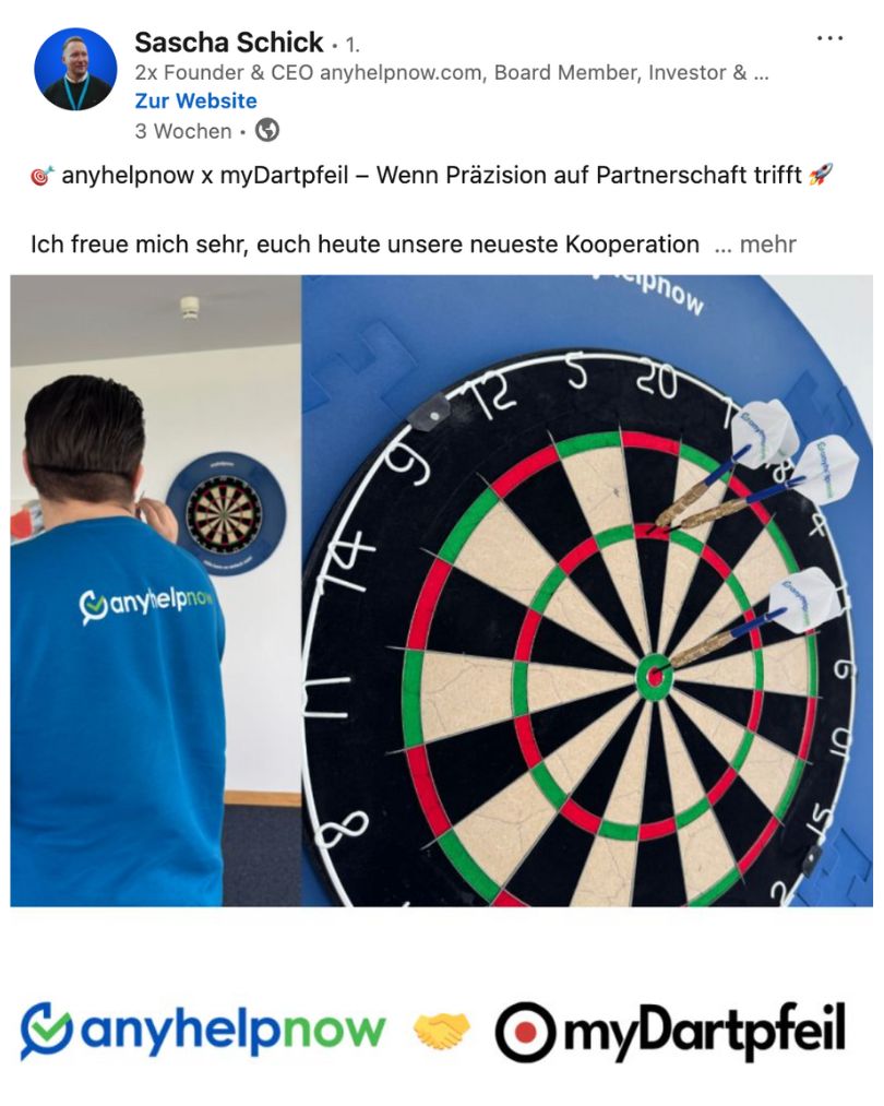 myDartpfeil est une entreprise allemande de e-commerce et un leader technologique dans la vente de fléchettes personnalisées. Parmi les clients satisfaits de www.myDartpfeil.com, on compte non seulement des passionnés et des joueurs amateurs, mais aussi des professionnels enthousiastes qui profitent de ce sport tendance et confient à myDartpfeil la création de fléchettes, cibles et autres articles personnalisés avec leur logo pour leurs employés et leurs clients.